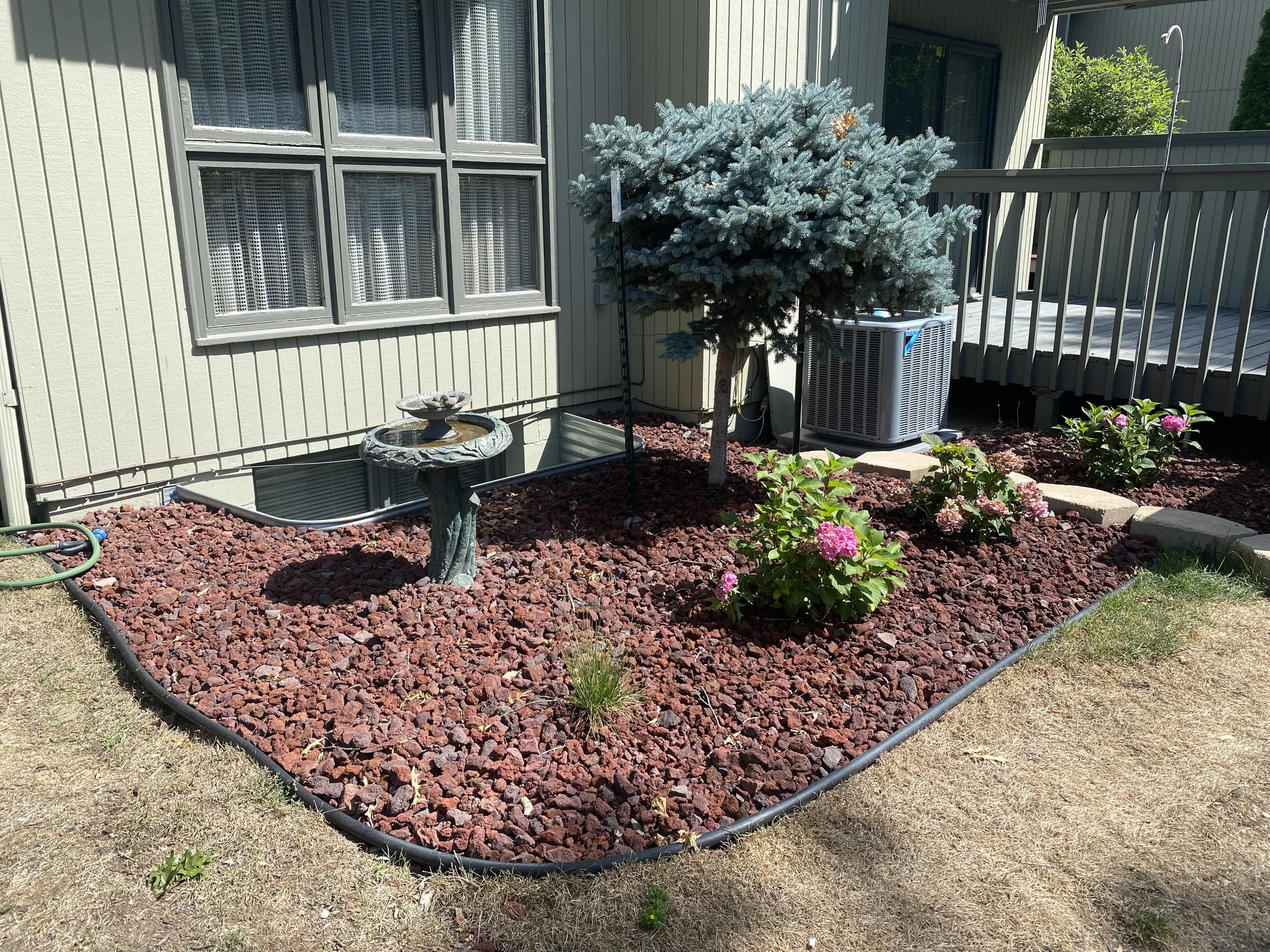 I went to the site to take measurements and chat with her about what she was looking for. Her main hopes were something she could see from the living room, as well as a little reminder of her home in Australia, Lava Rock. While measuring, she told me a few incredible stories about her husband and their life in Australia.