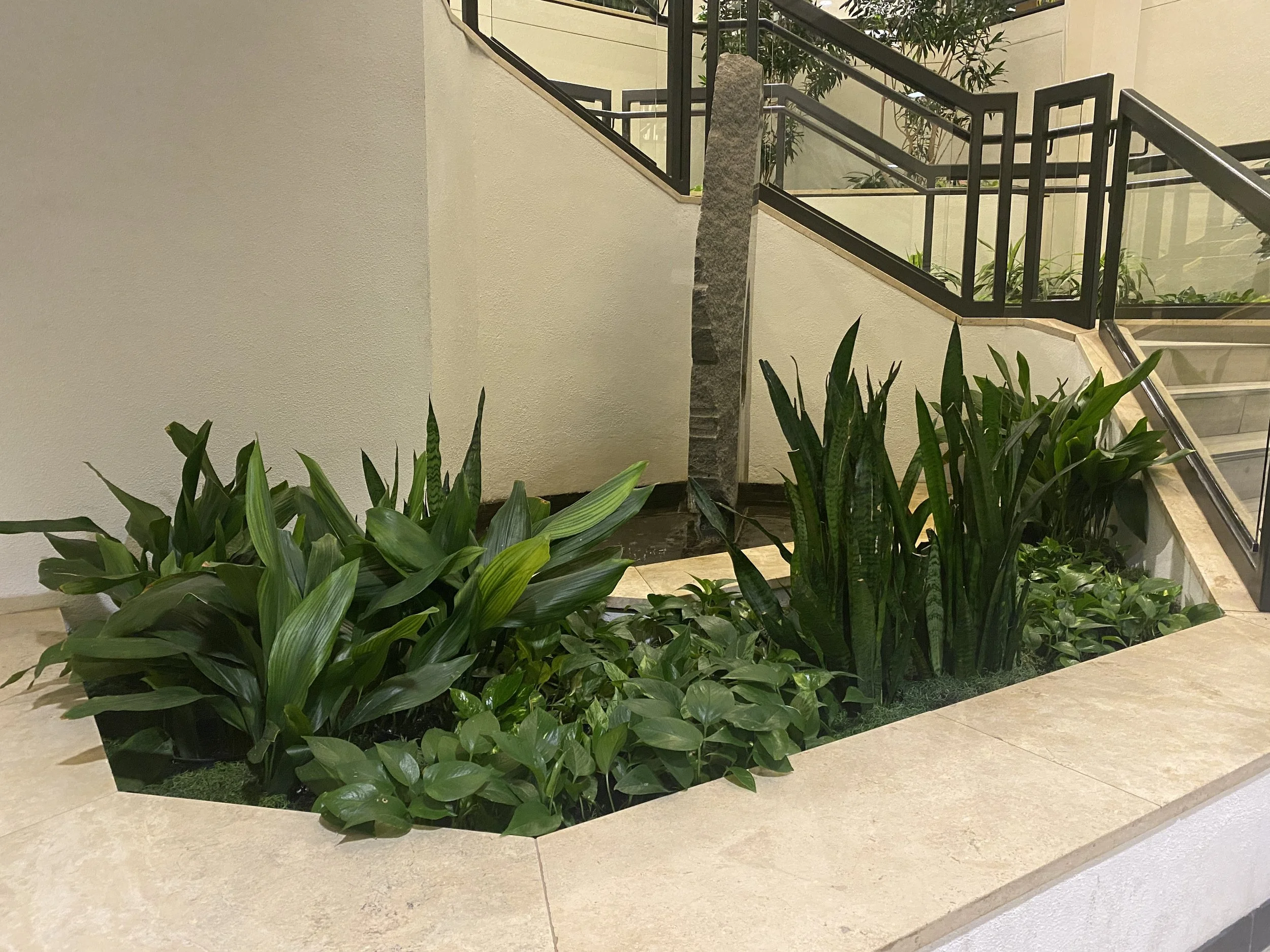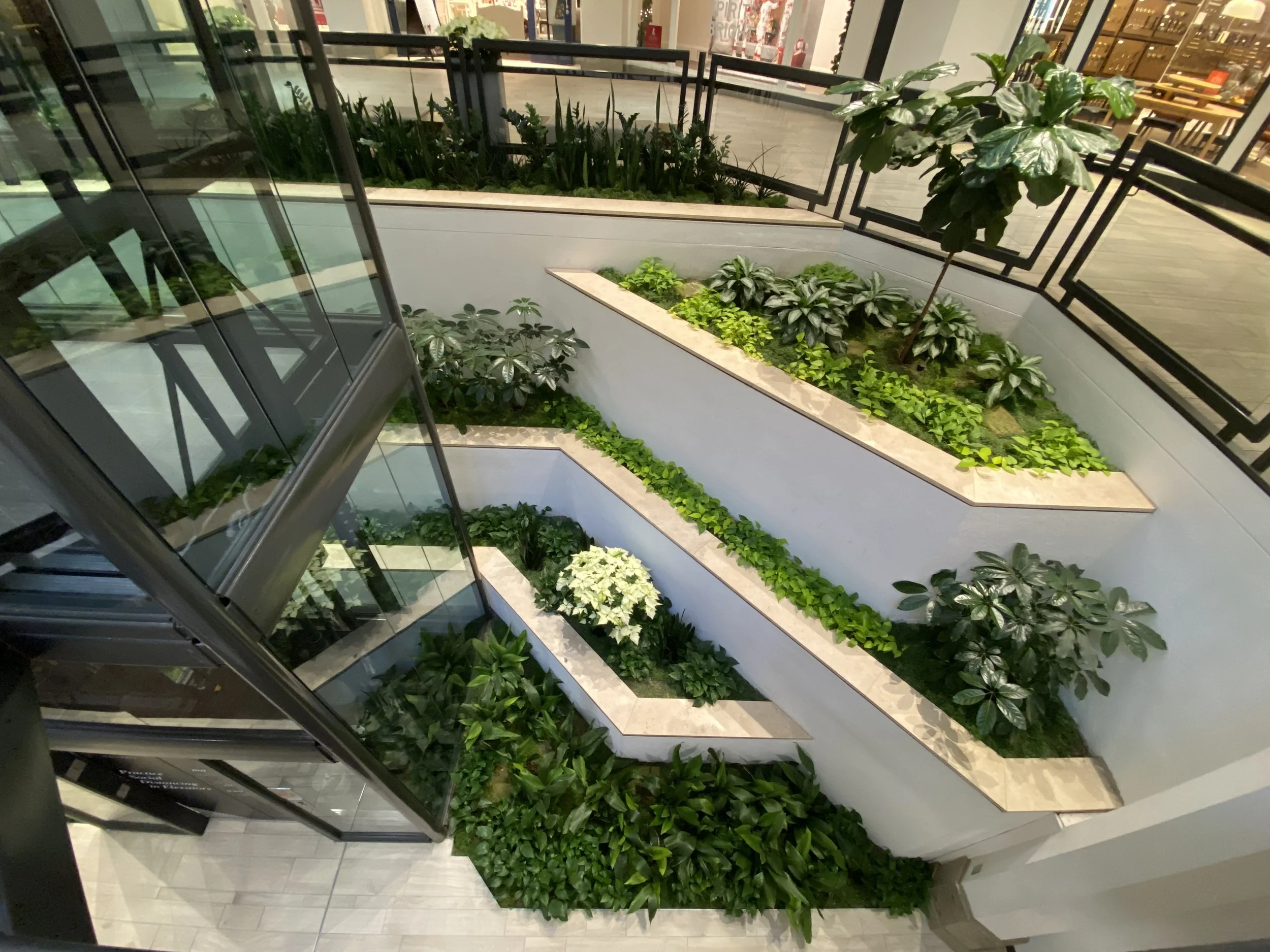 A full re-envisioning of what an elevator lobby can be. All new plantings in terraced beds and surrounding atrium.